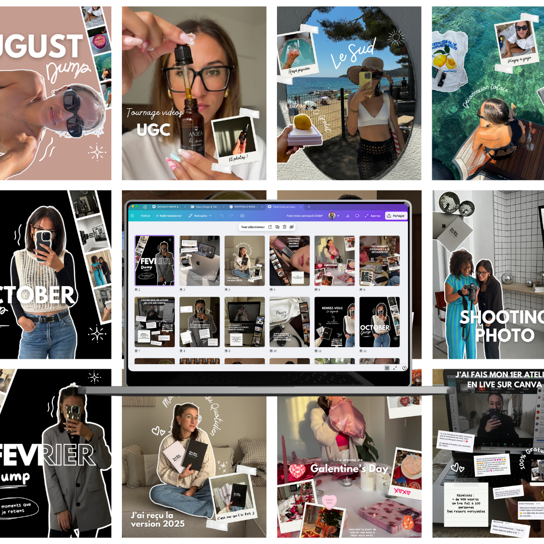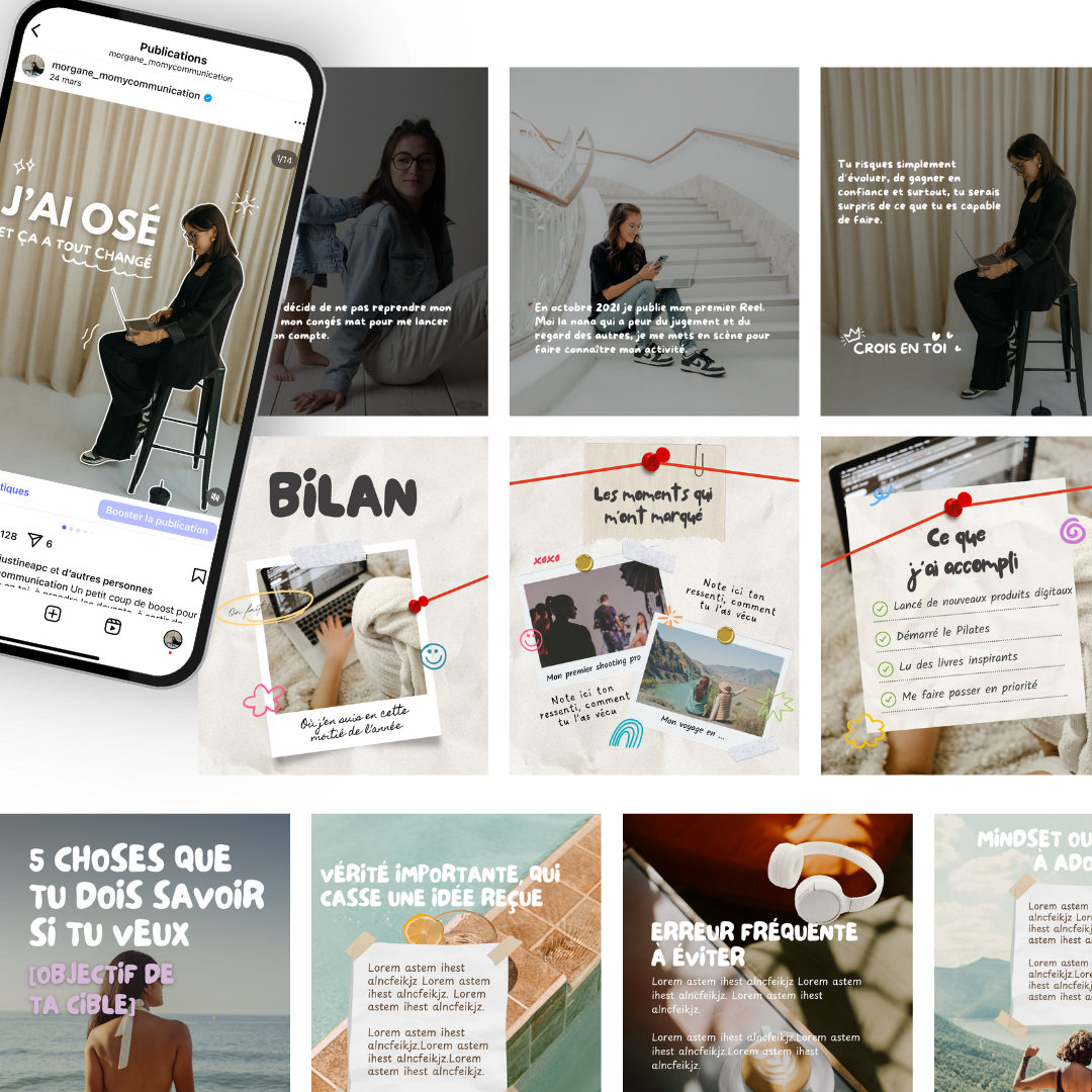 Des templates Canva prêts à l’emploi pour créer des carrousels storytelling percutants, modernes et sincères.